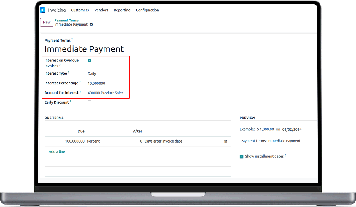 A Module For Interest for Overdue Invoice Calculation while Creating Invoice.