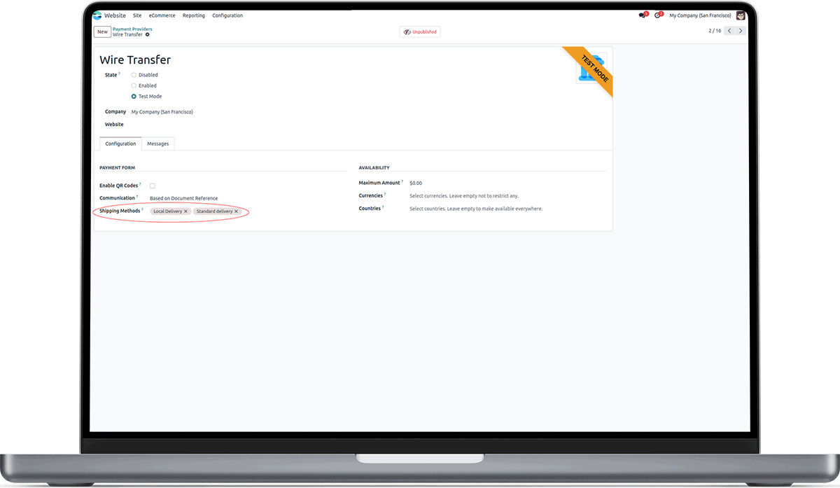 • Can configure the shipping methods such that it can be selected only with certain payment providers.