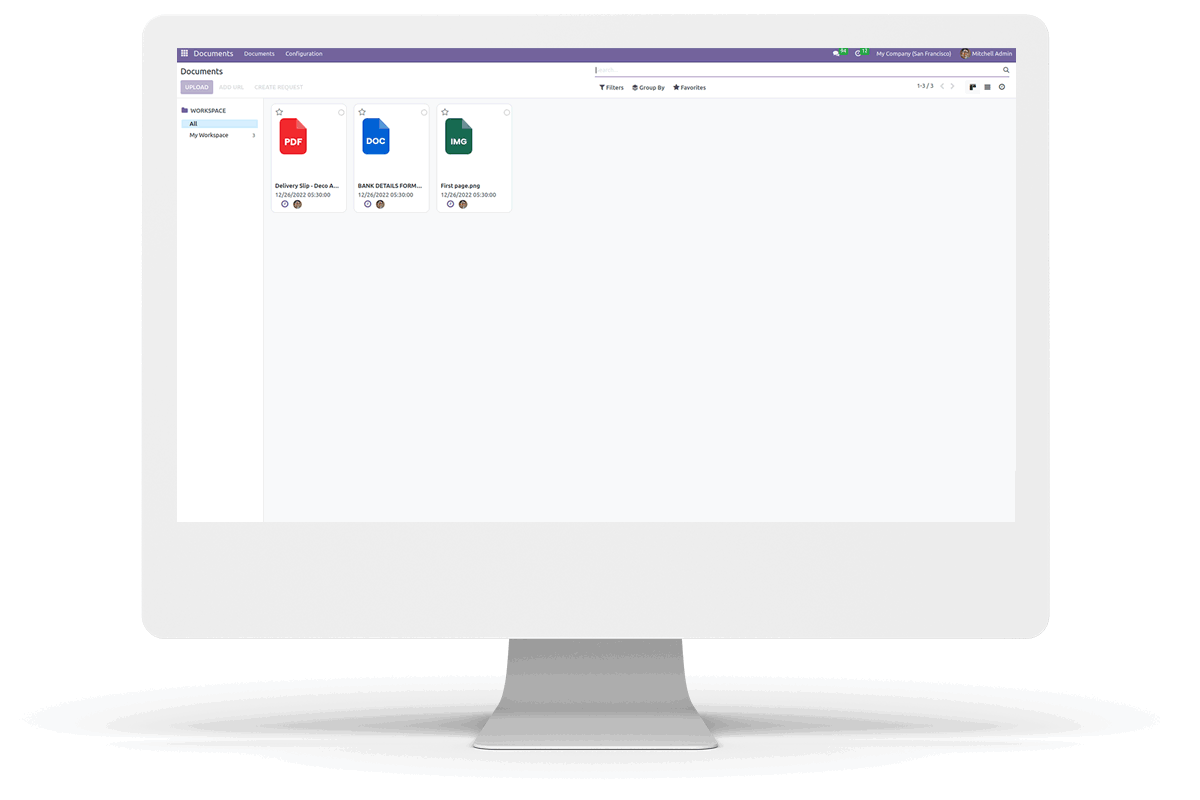 User can upload their document into document management module, give access to specific users, able to choose workspace and auto delete option