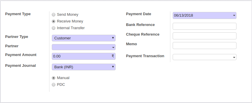 Payment form have two extra fields to put Bank and Cheque Detail.