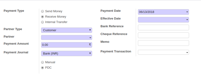 When you select PDC, You have to put 'effective date' of PDC.