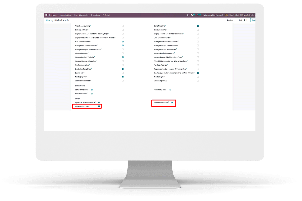 Easy to hide sales price in the tree, kanban and form view.