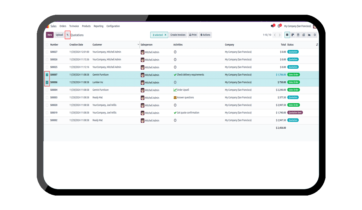 Select records and click on the attachment button
