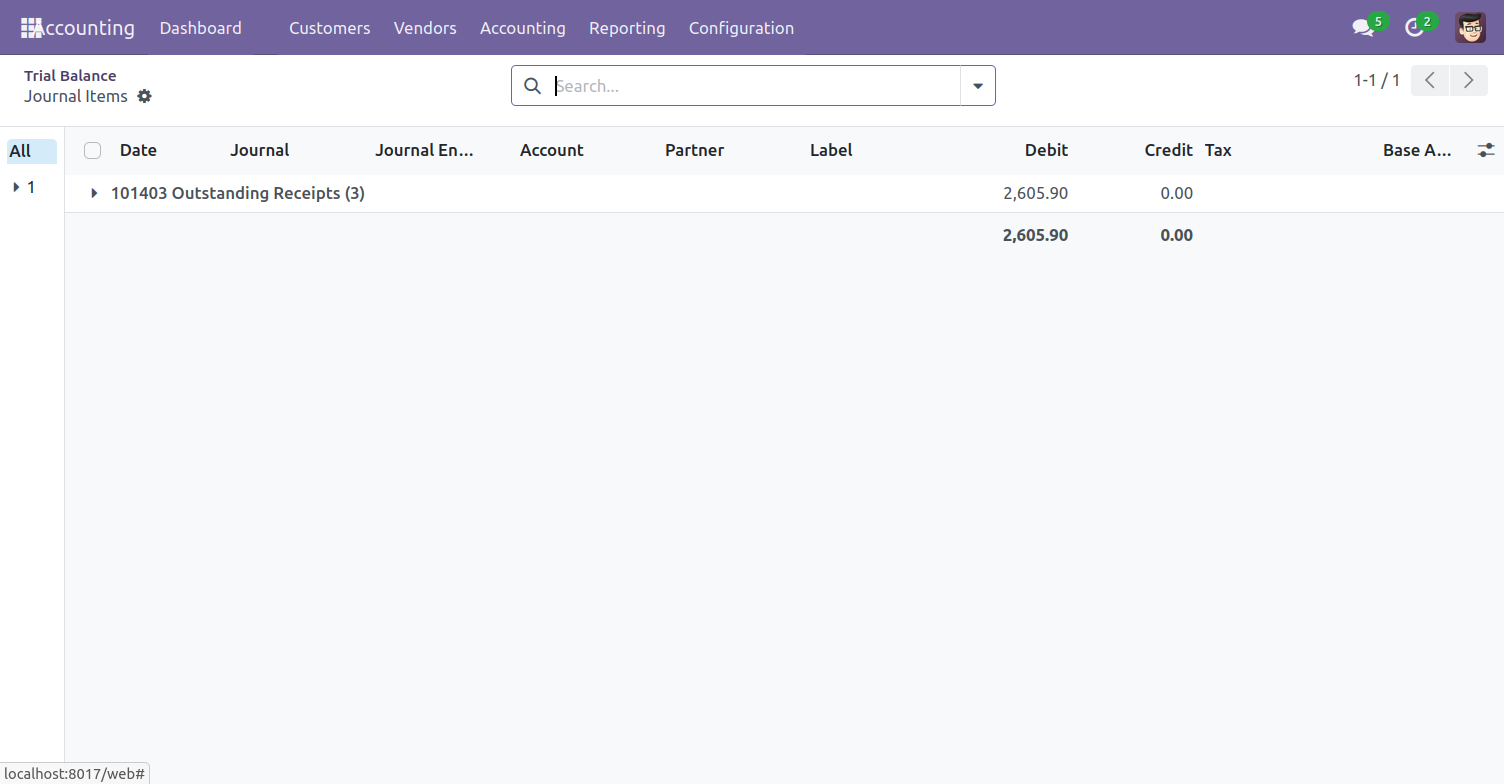 The user can drill down from the main report to the journal entries. You can open the form view of each journal entry and view the complete details here.
