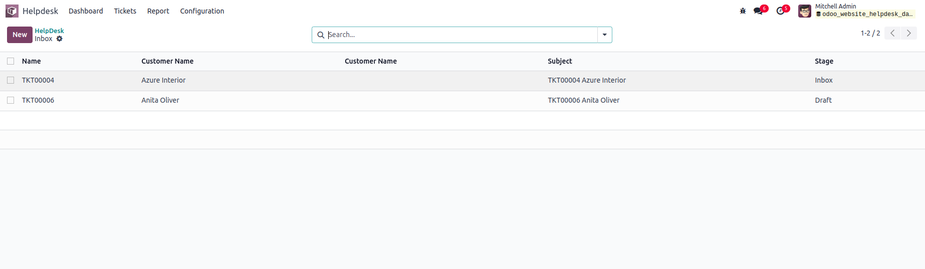 Manage the tickets in backend by clicking on the 'New tickets' tiles.