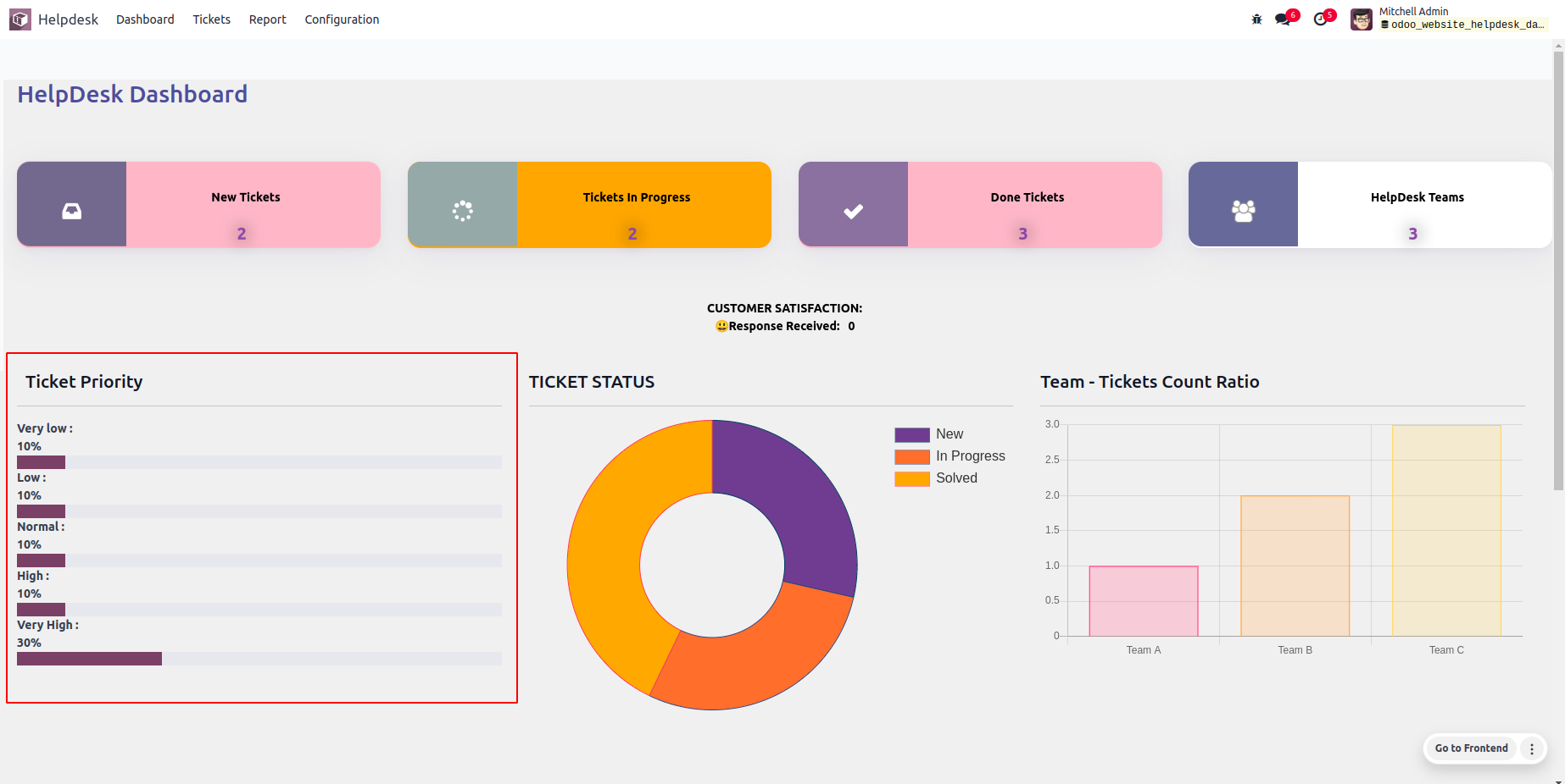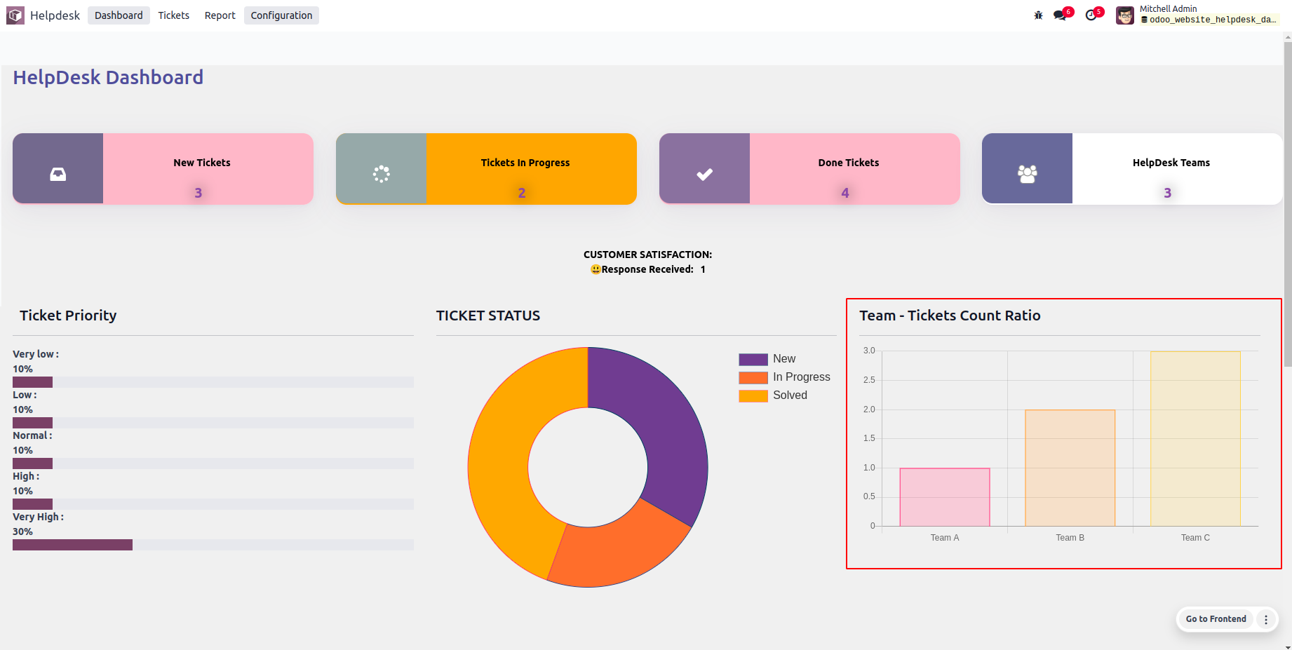 • View status of tickets in the Doughnut Chart.