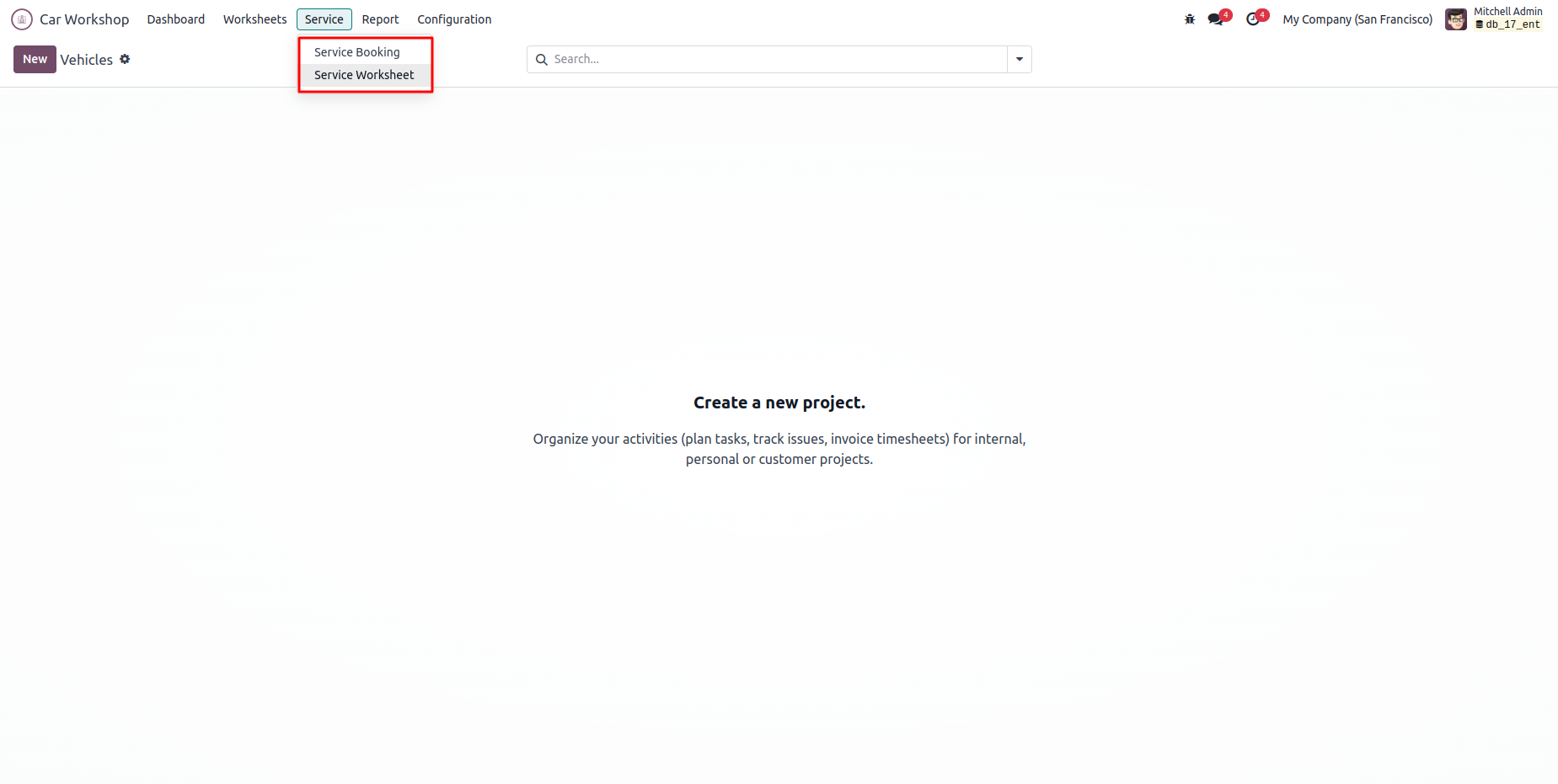 Added a menu to the Car Workshop module to handle bookings and data on the corresponding worksheet.