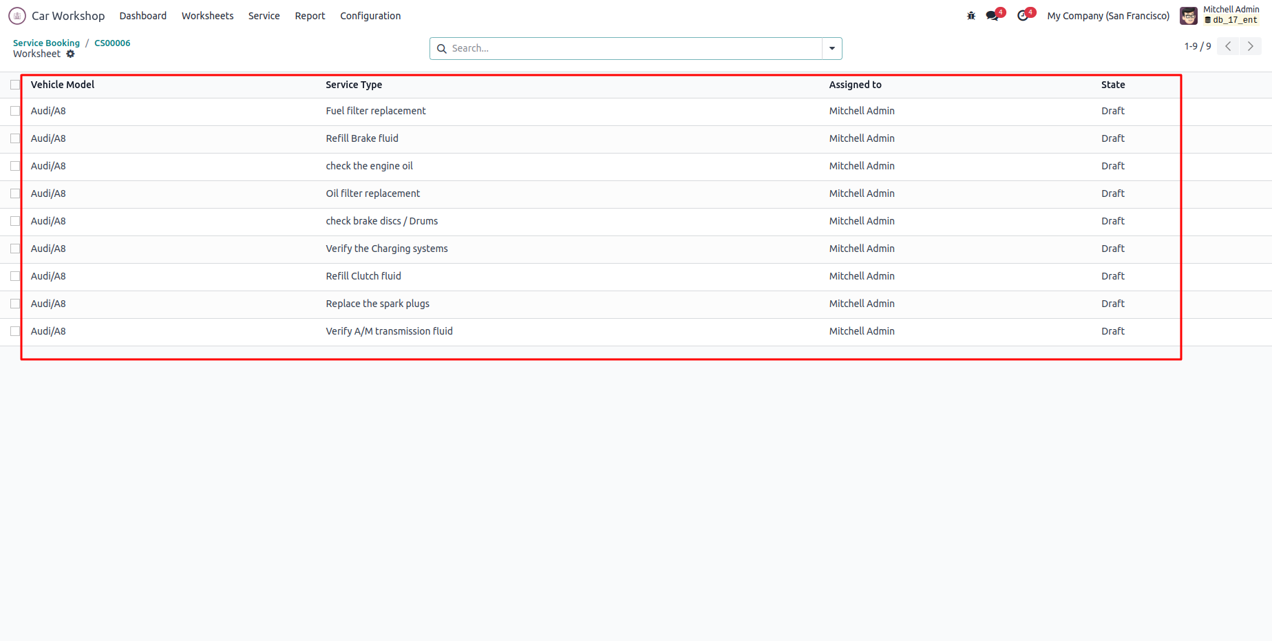 The service worksheet will automatically generate after confirmation.