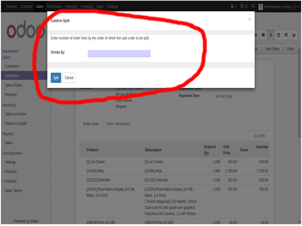 All the quotations split from a sale order have the name as count followed by the parent sale order.
