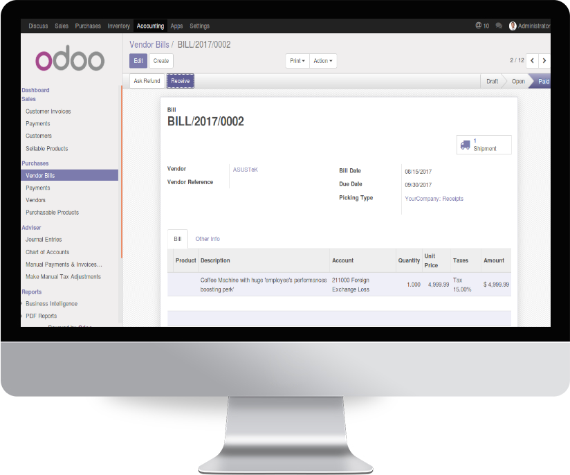 >On clicking Receive Button, Stock Is Moved To Our Inventory.