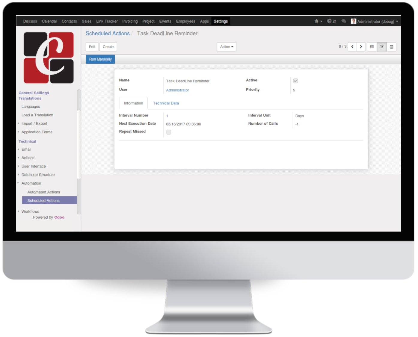 Project Task Form - Configuration of Task Deadline Reminder