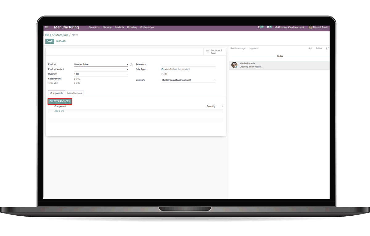 Click 'SELECT PRODUCTS' button in BOM to add multiple components.