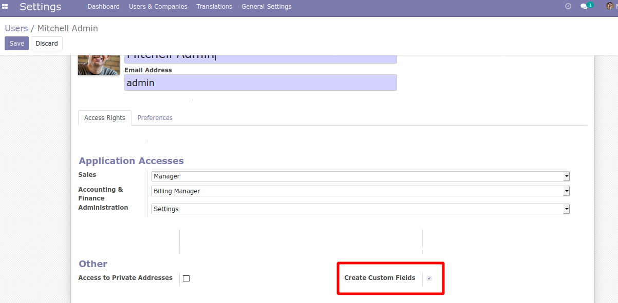 After installation, Give Acces to the user to 'Create Fields' from User settings.