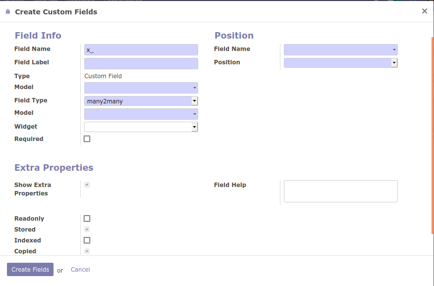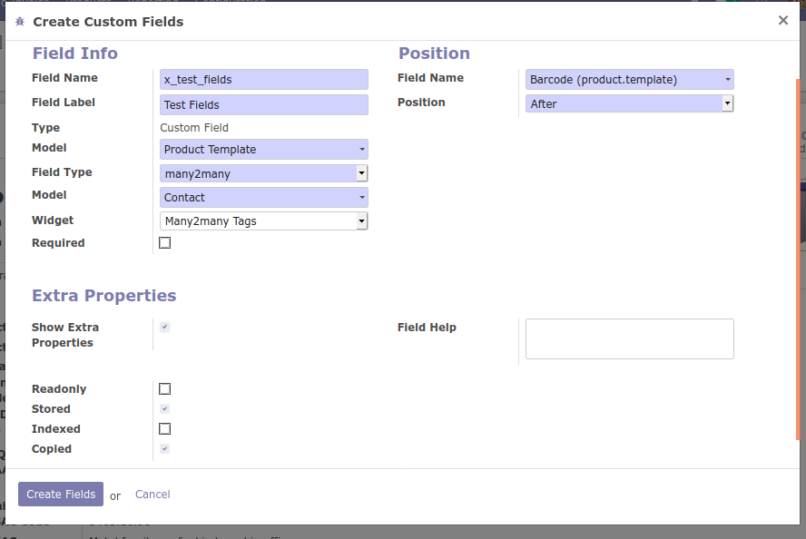 The Dynamic Product Fields helps with easy creation of custom fields on products without any coding. This module helps to add new fields on the product's form as per one's requirement. From the products view, one can click create fields and can create a new custom field without any coding.