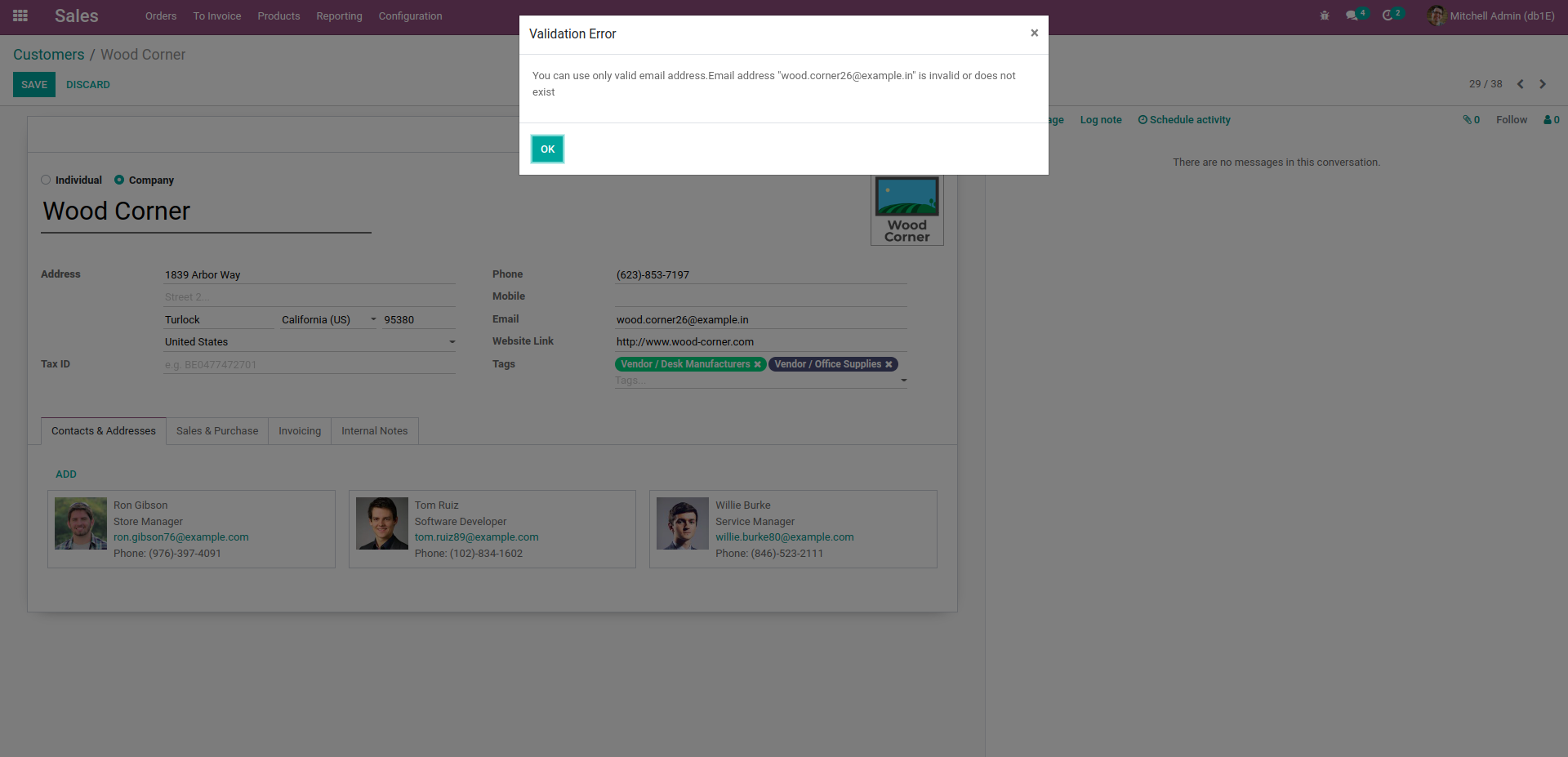 Email address of partners in odoo will remain valid and maintain reliability in address details.