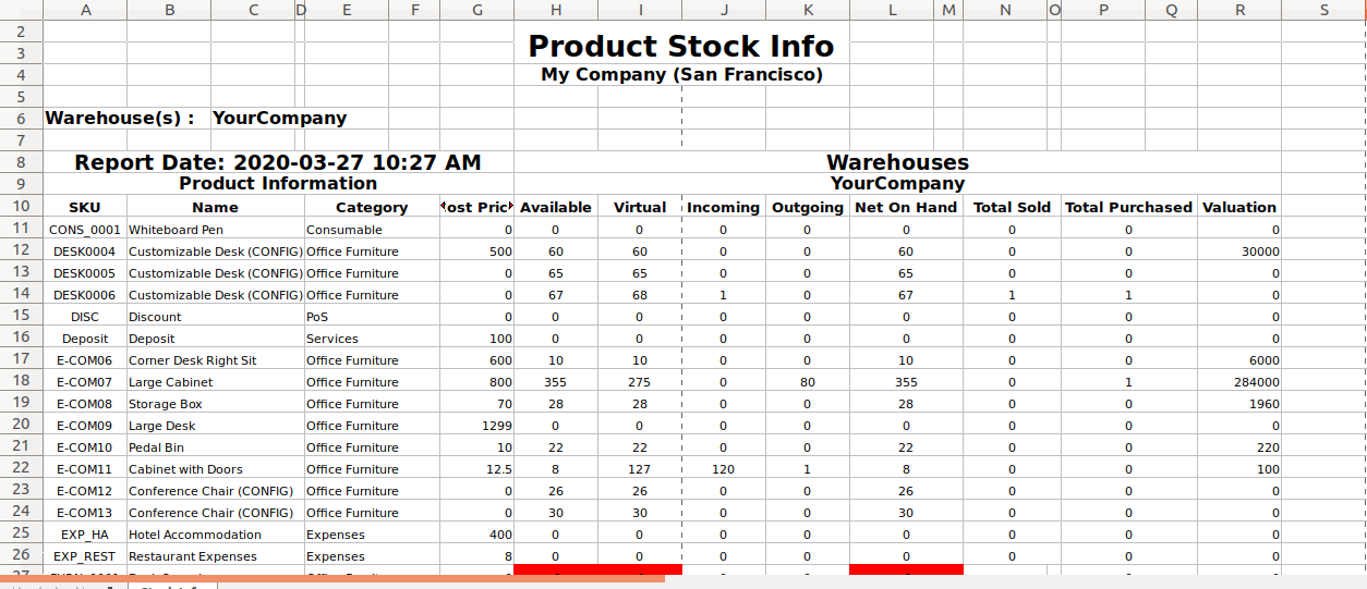This module helps to print Current Stock Report for all Products in each Warehouse with XLS.