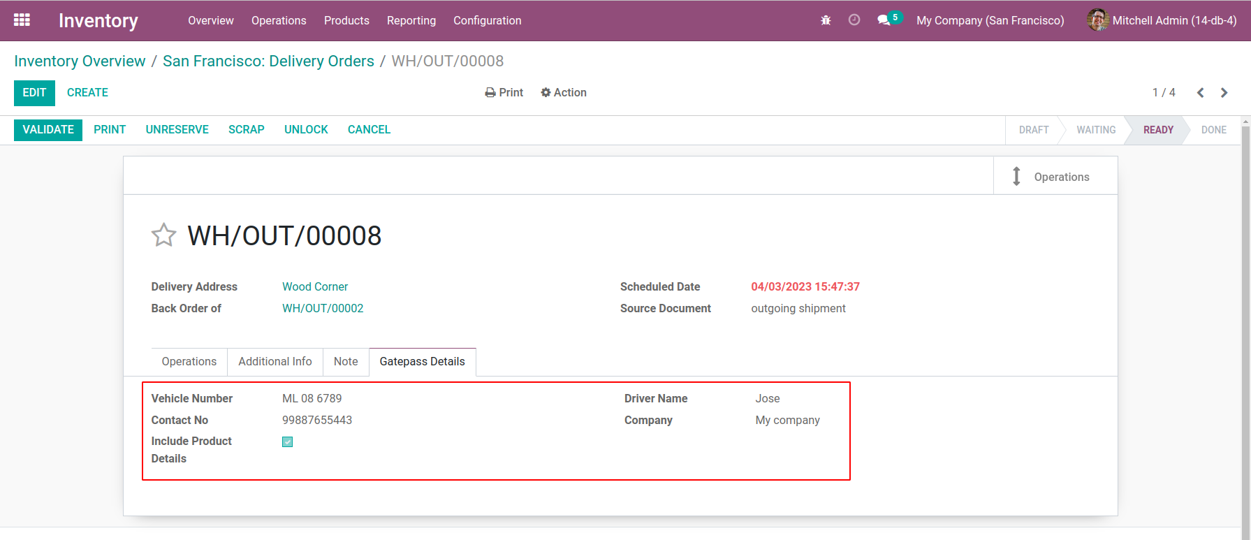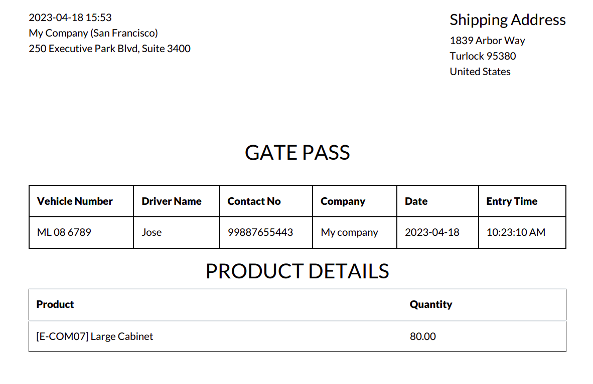 Gate pass modules helps to generate gatepass tickets including the details of the vehicle,driver and the information about the company which the vehicle belongs to with entry date and time.And the information of the products in the delivery order.
