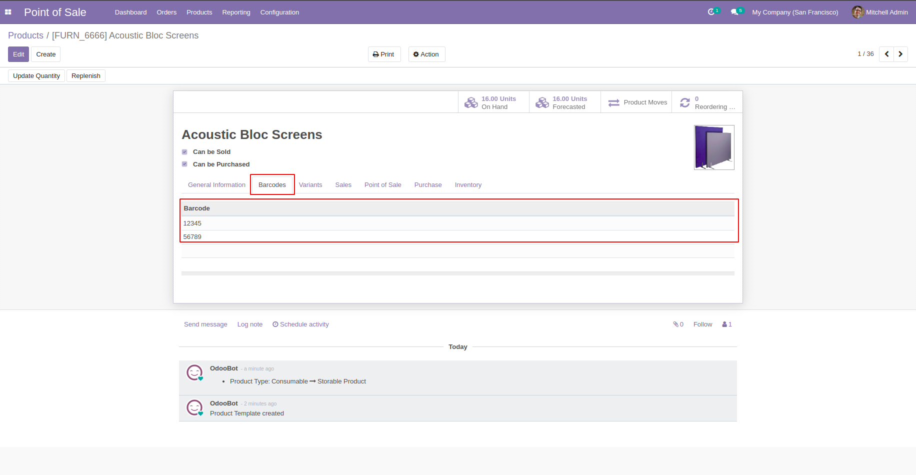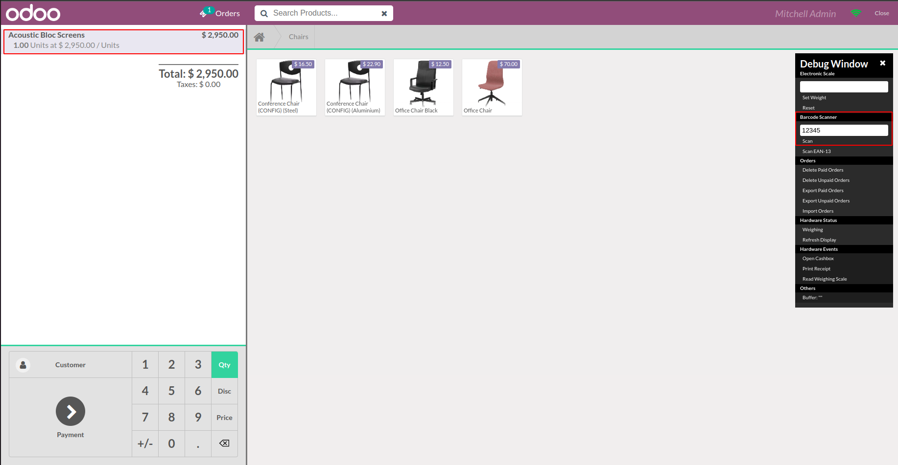 Scan the barcode using the barcode scanner and you can see the product gets added in ordeline. If there is only single product Variant, you can see the multiple barcodes set for product in Point of sale -- > Products --> Products