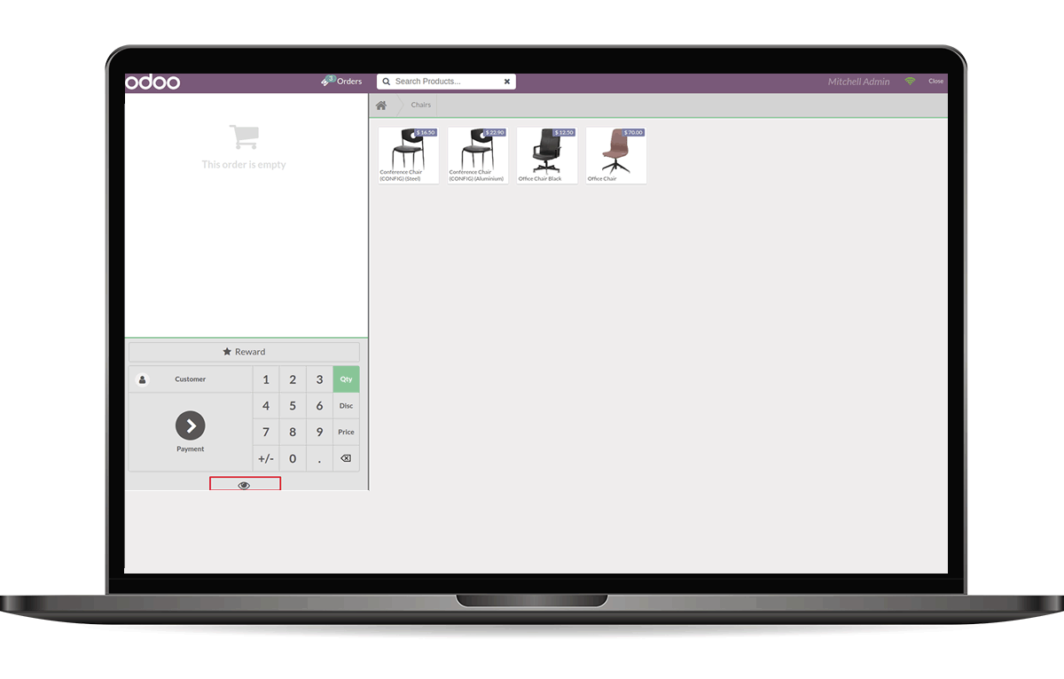 Clicking on the button with the eye-icon will hide the numpad, clicking it again will show the numpad again.