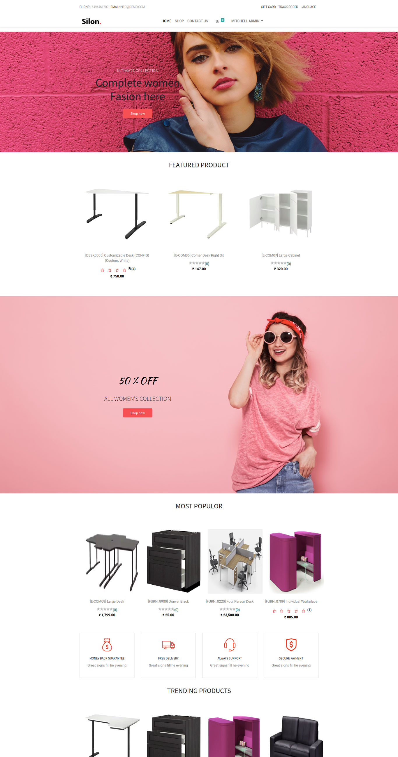 An attractive home page with featured products, trending products, and most popular products snippet.