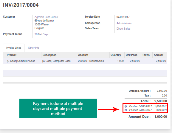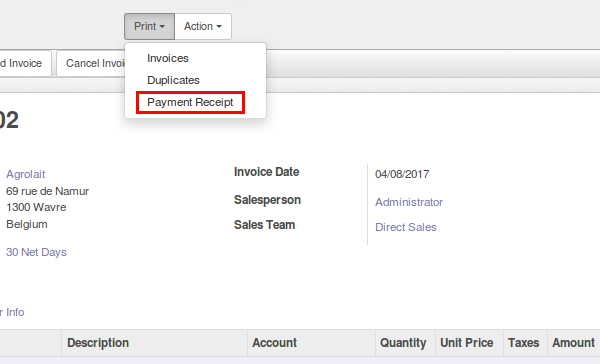 ☀ Generate Customer invoice receipt with payment details.