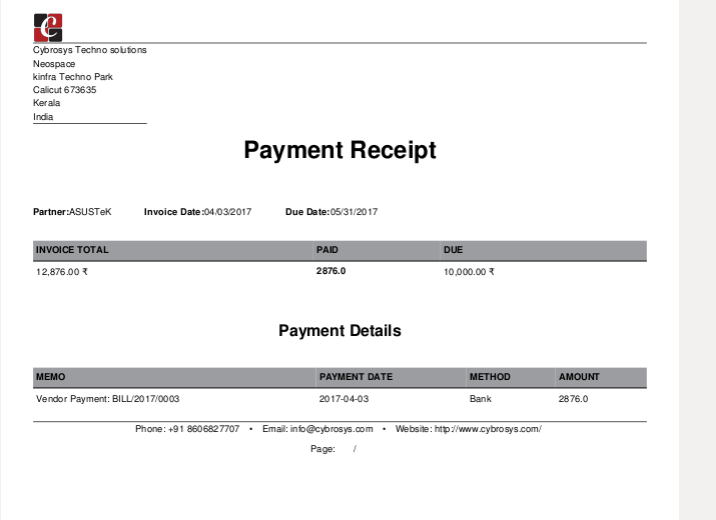 ☀ Generate Vendor receipt with payment details.