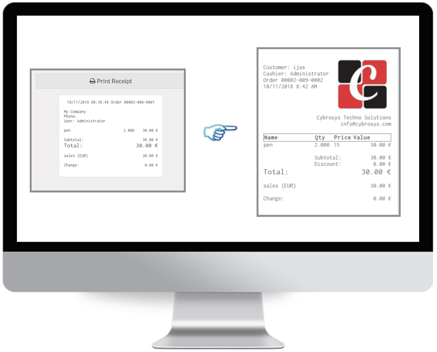 the company from the receipt. Also replace the default POS logo in the Status bar with Company logo.