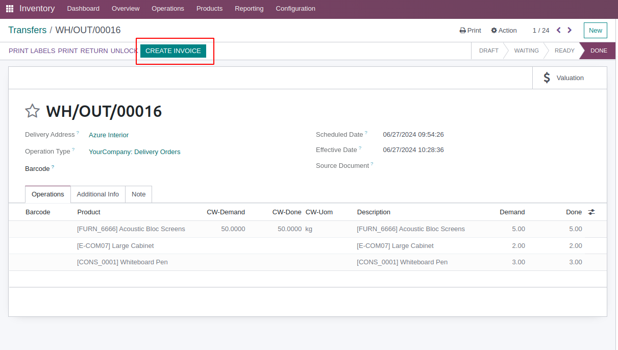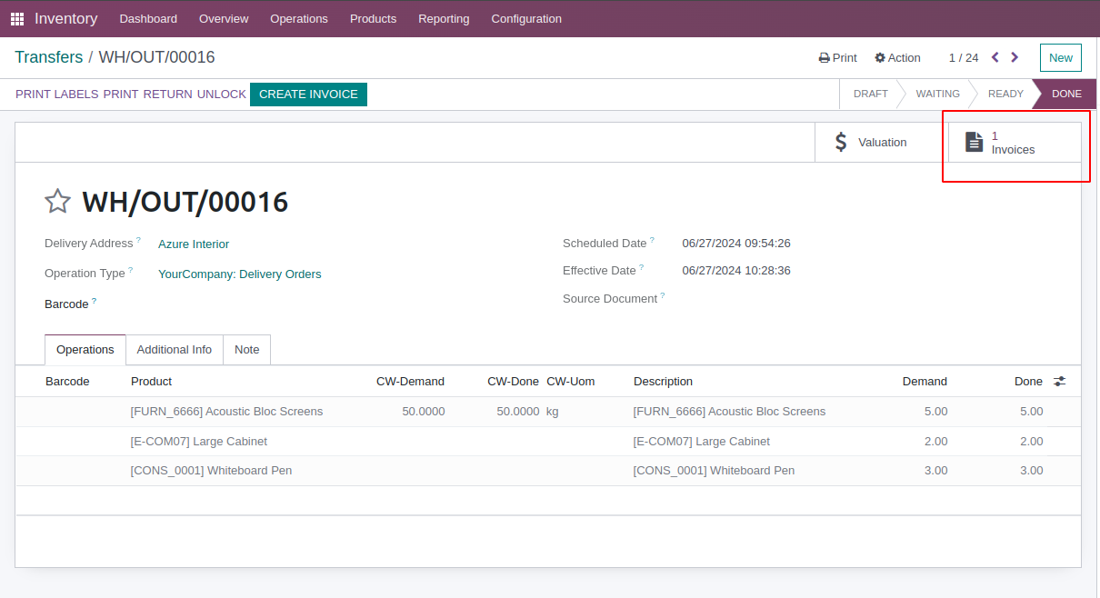 This module includes the following features, Export Product Stock in Excel, Multi Branch Operations, Product Brand in Inventory, Barcode scanning in Inventory, Inventory Dashboard Odoo 16, Stock Picking From Invoice, Inventory All In One Report Generator, Product Stock Details, Invoice From Stock Picking , Picking Line Description(Shipment/Delivery) and Catch Weight - Stock and Picking Order Line Views in a single module.