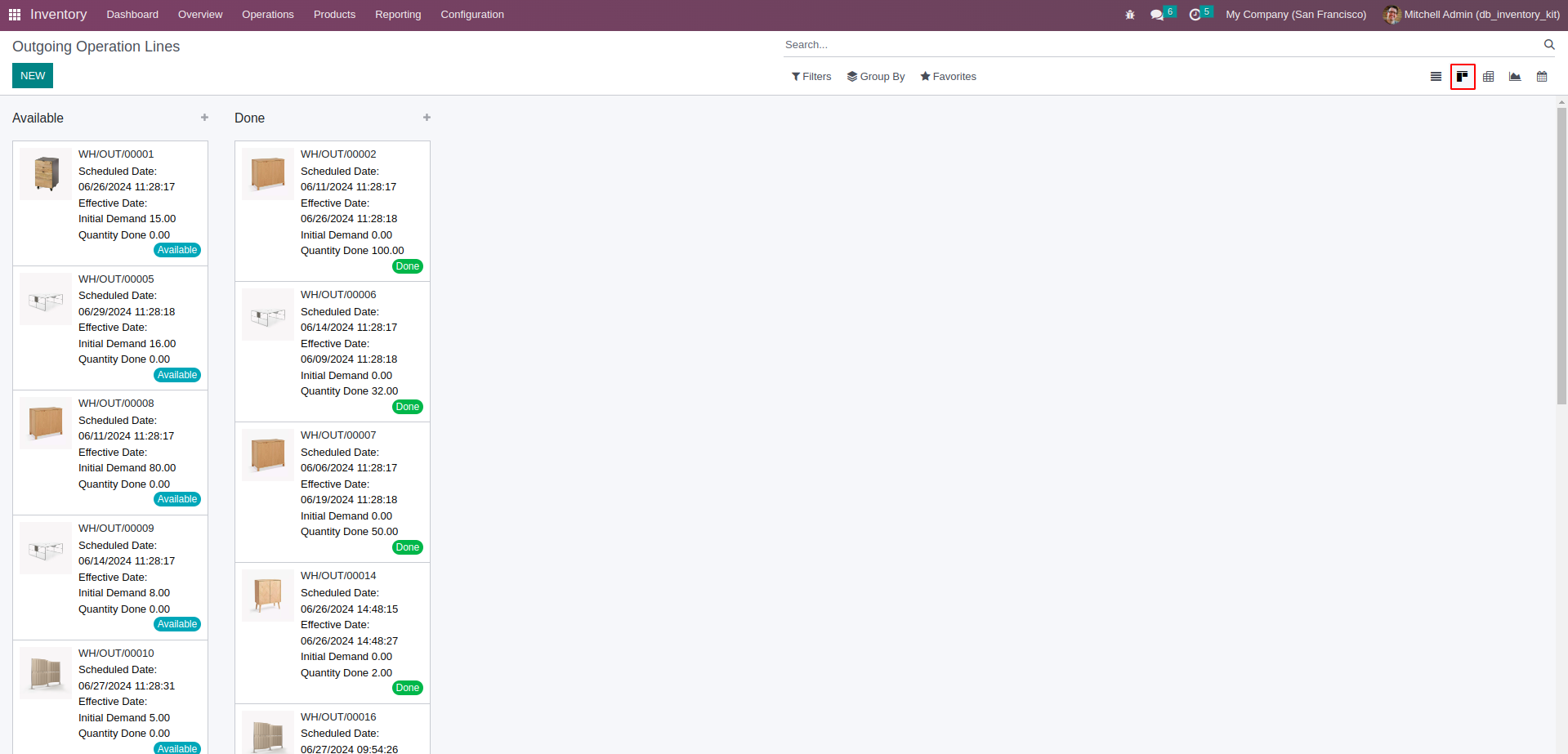 Incoming and Outgoing Picking Operations Views are included with images of their related products