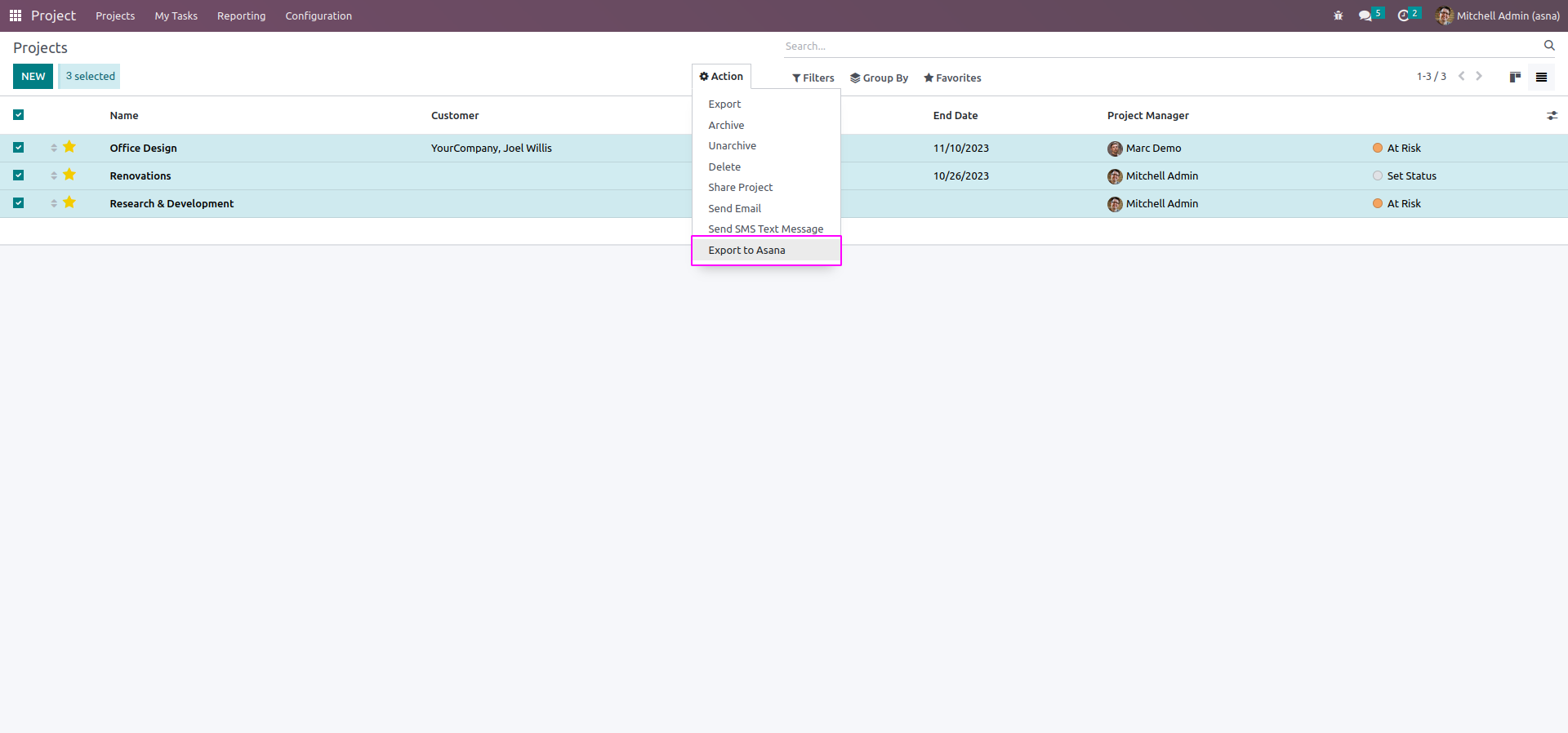 Easy to export Tasks from Odoo to Asana according to the Project Stages