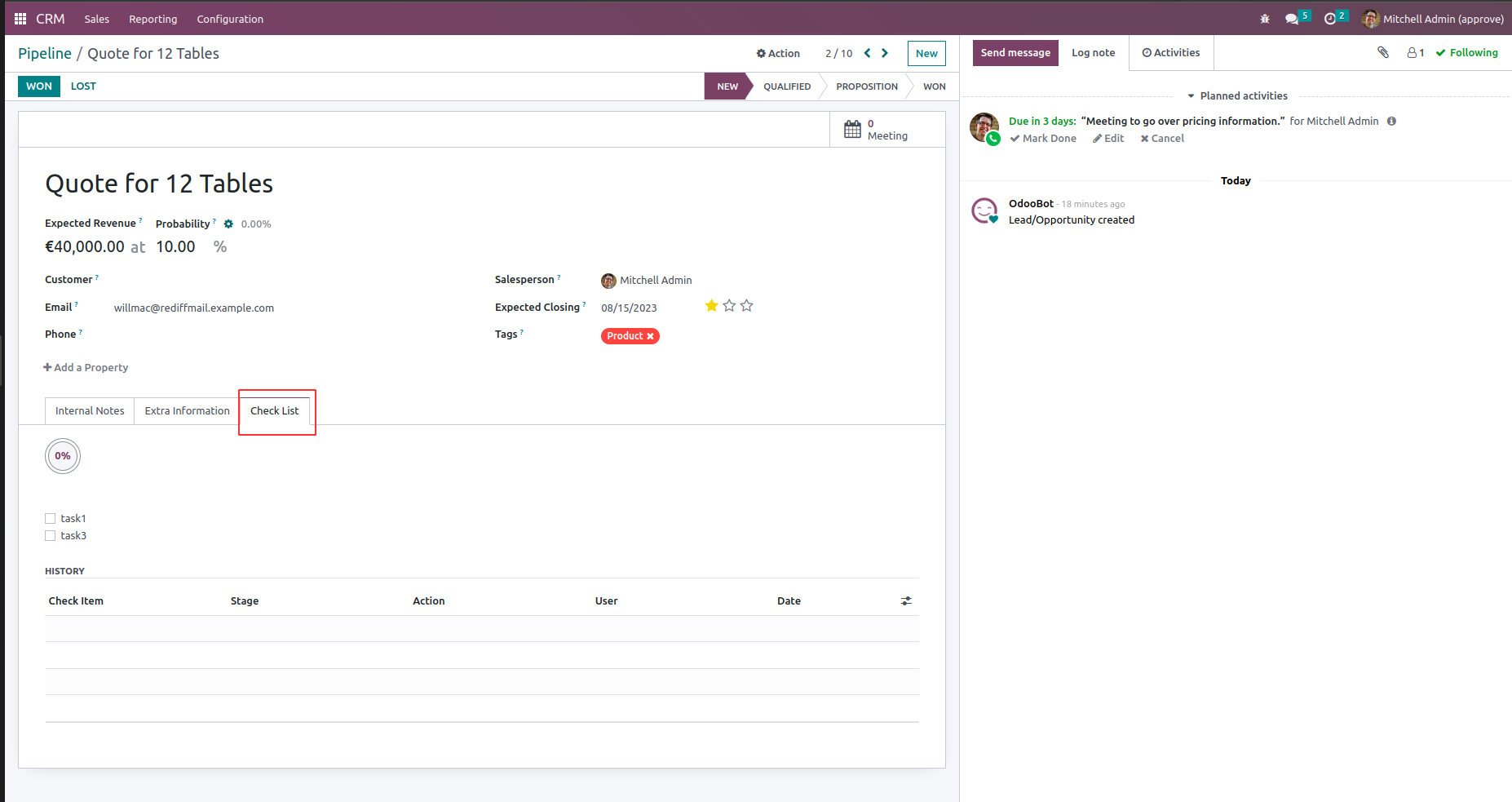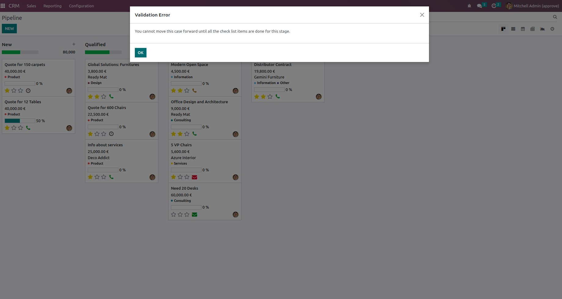 Making a customer from an opportunity is the goal of the CRM pipeline. To achieve that goal sales staff needs to undertake a specific sequence of actions or tasks. Each of those actions is important on the defined stage. For working as an efficient company The CRM is an important part. This app provides a checklist for each pipeline stage to control requirements, fulfillment and to make sure that each action/checklist item is fully approved by responsible users. So that it will be easier to manage through CRM pipelines.