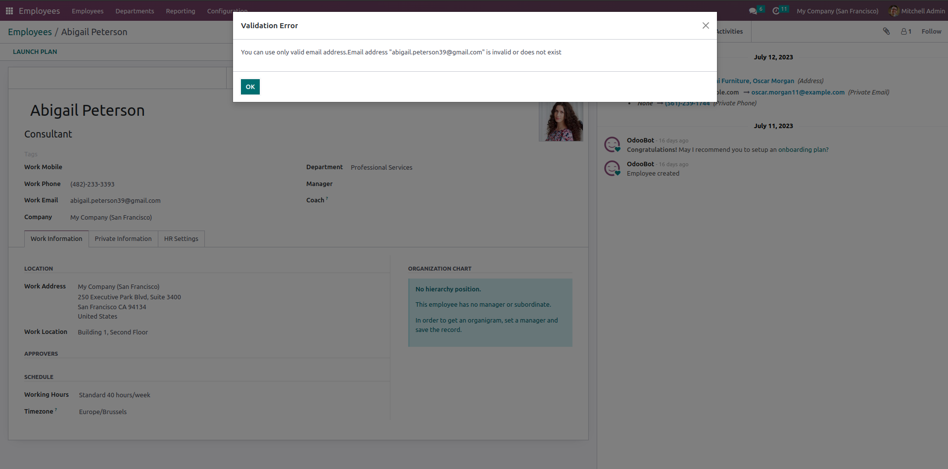 Email address of partners in odoo will remain valid and maintain reliability in address details.