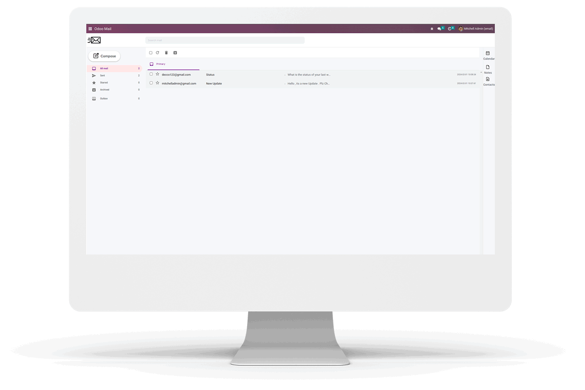 This module helps to manage mails in Odoo.Here we can compose,search,star,archive,delete mail.We can view the outgoing mail,sent mail,archived mail ,starred mail in separate tabs.