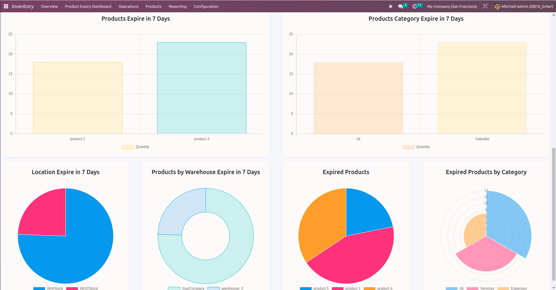 We can view products expiring within 7 days by categorized by category, location and warehouse.