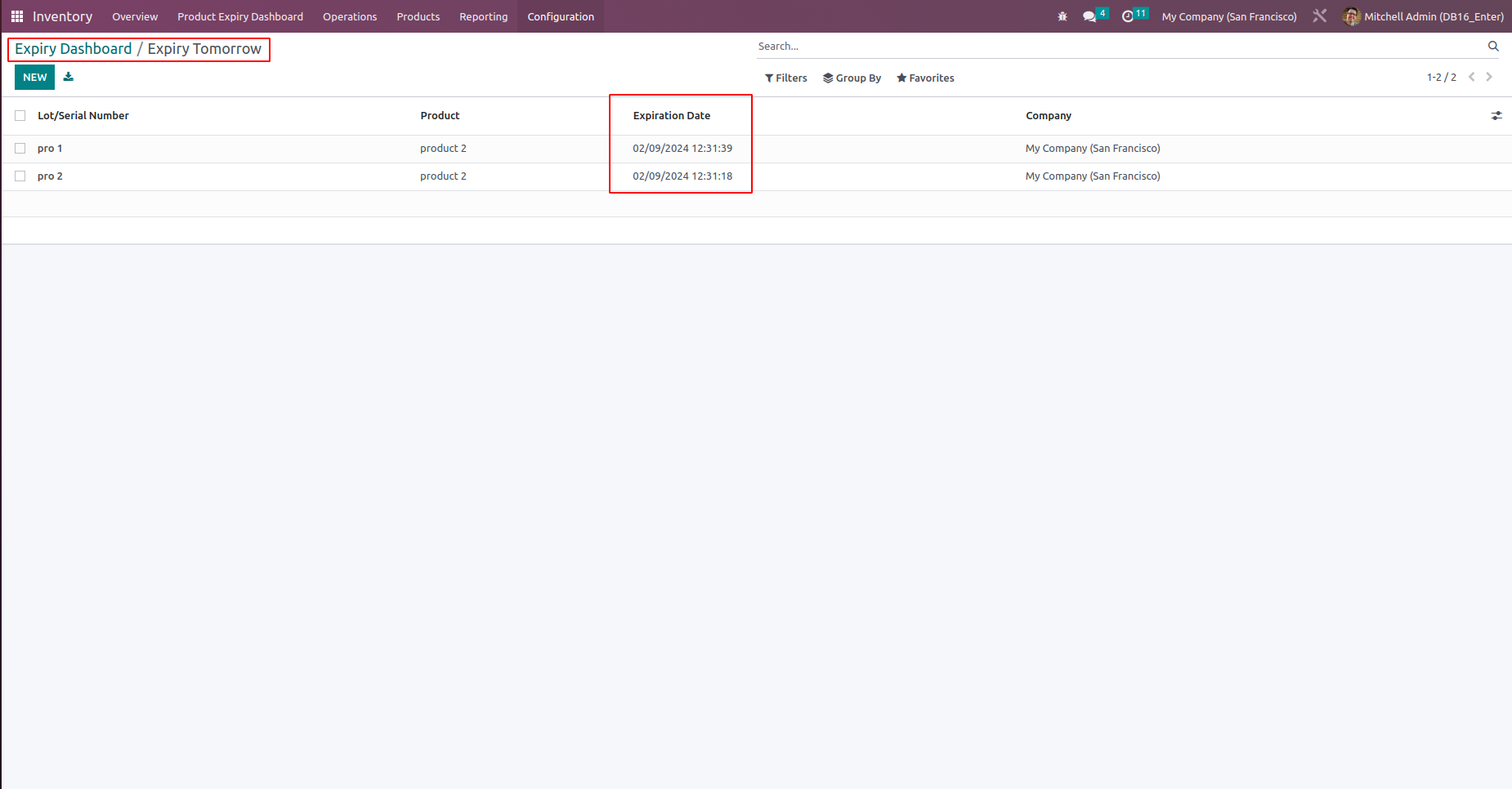 Navigate to Inventory --> Product Expiry Dashboard menu.
