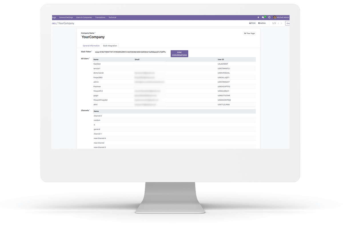 With the help of 'User OAuth Token' we can connect with slack, in result slack channels and their members will be loaded into odoo.