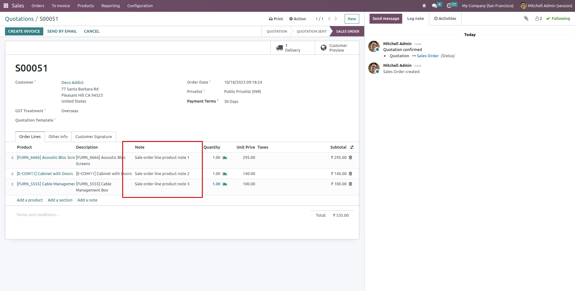 The Order Line Notes Module is Used to Add Notes to Sale and Purchase Order Lines.