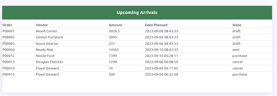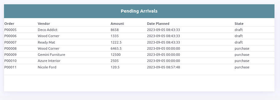 Pending Arrivals