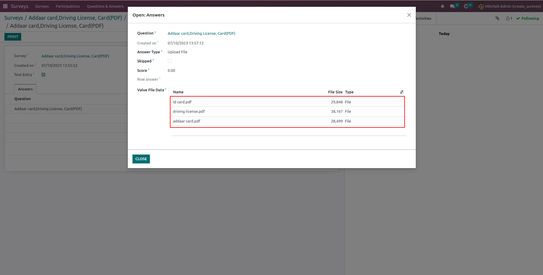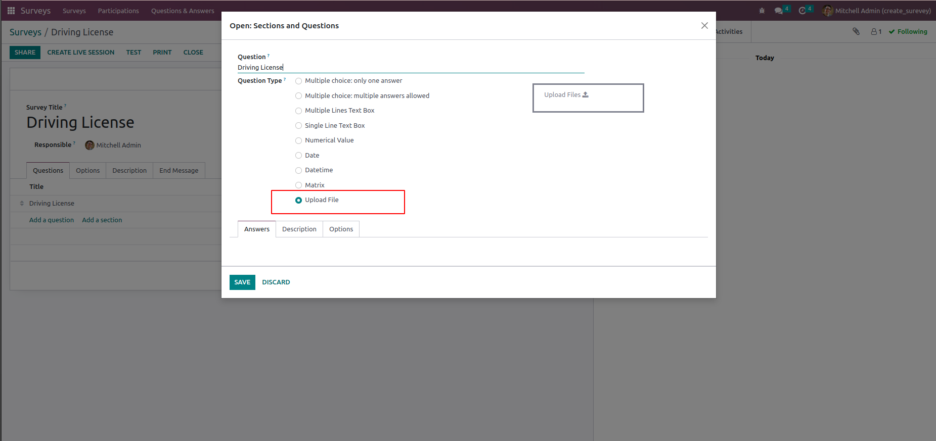 User can upload file for survey questions.