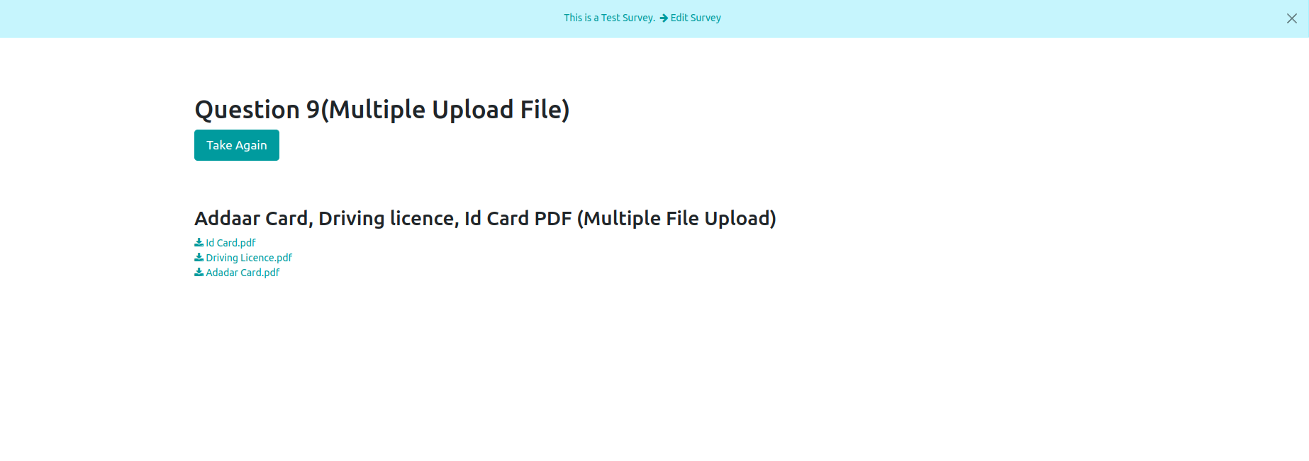 Upload single file as answer for survey questions or Upload multiple file as answer for survey questions.