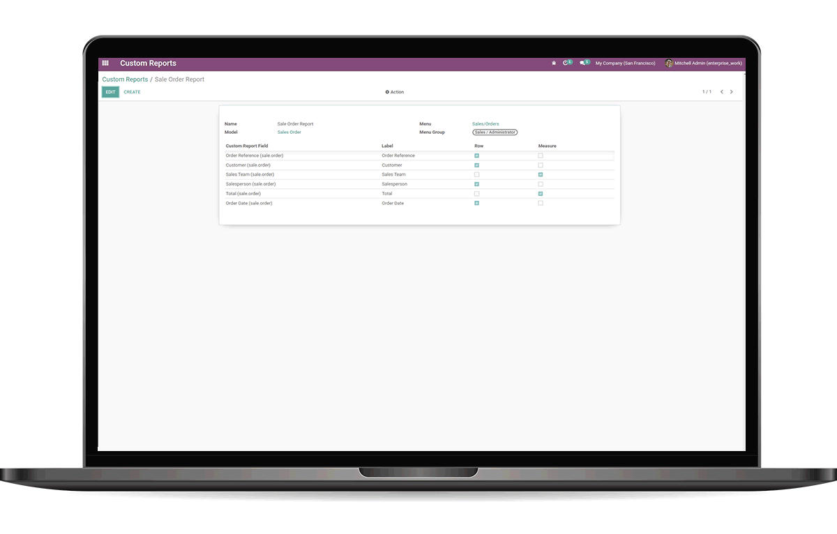 In the Custom Pivot Report App, user can configure the menu, fields, and security for pivot reports. A user can easily set rows and measures for the pivot report.