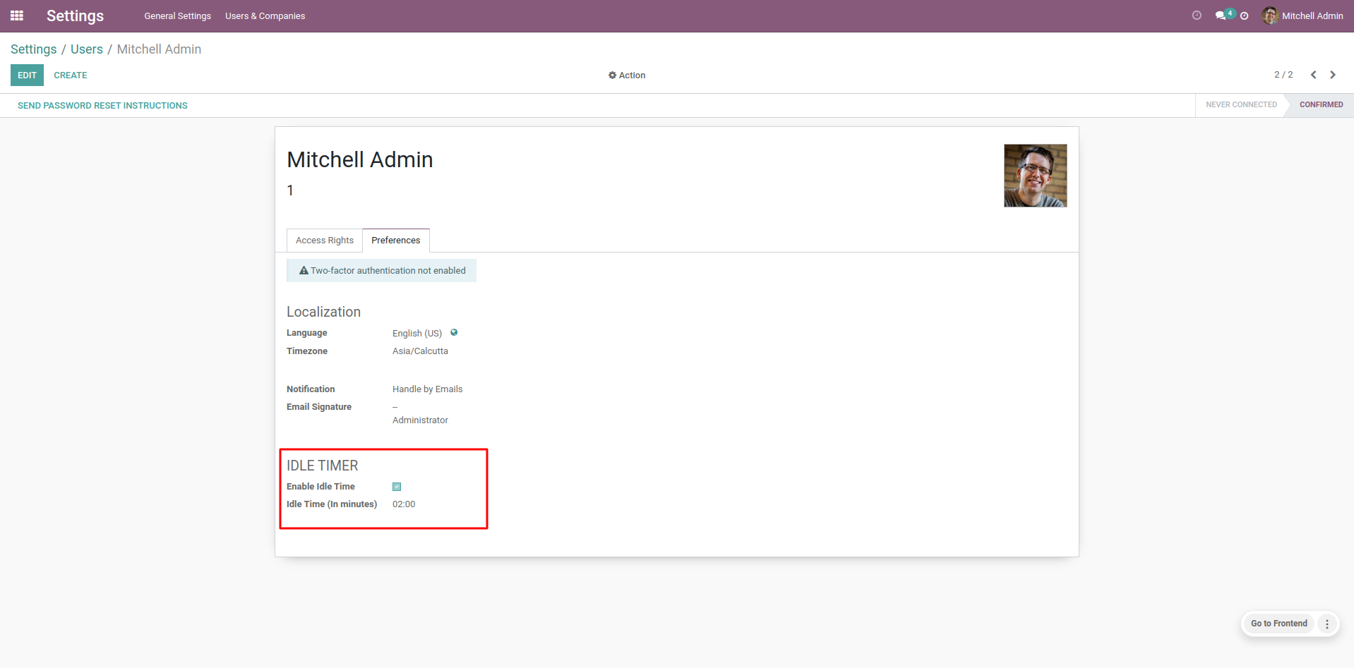 User need to enable the option idle timer under Settings -> Users & Companies -> Users -> Preferences after that set time for idle.
