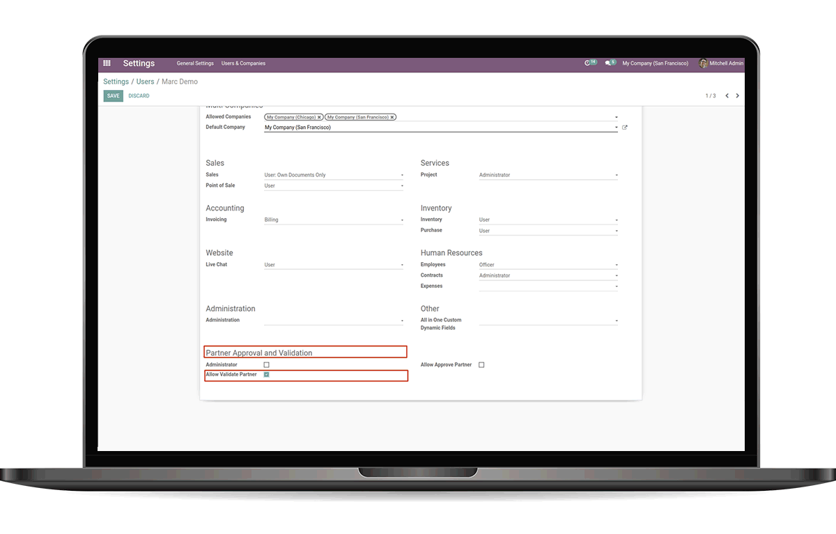 Easily can set approval or validation of Customer/Supplier accesses user-wise.