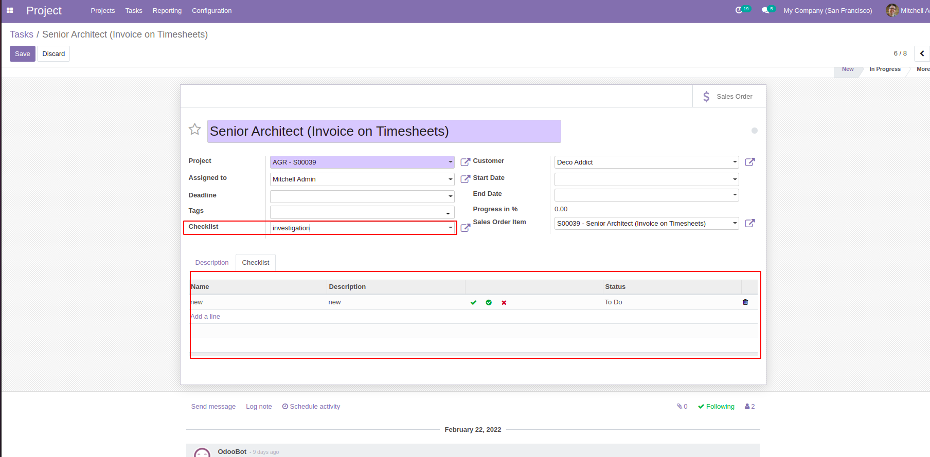 Checklist activity form view.