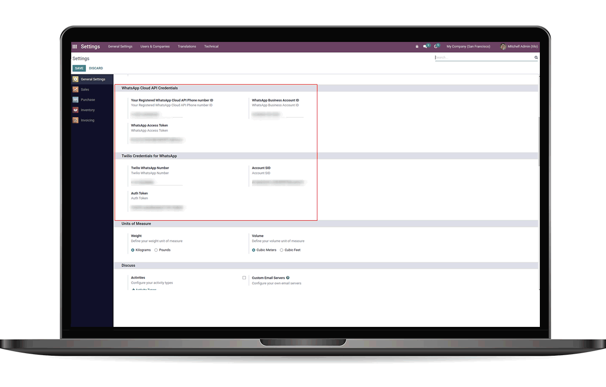 Go to Settings and add Twilio Account Credentials and Cloud Whatsapp Credentials.