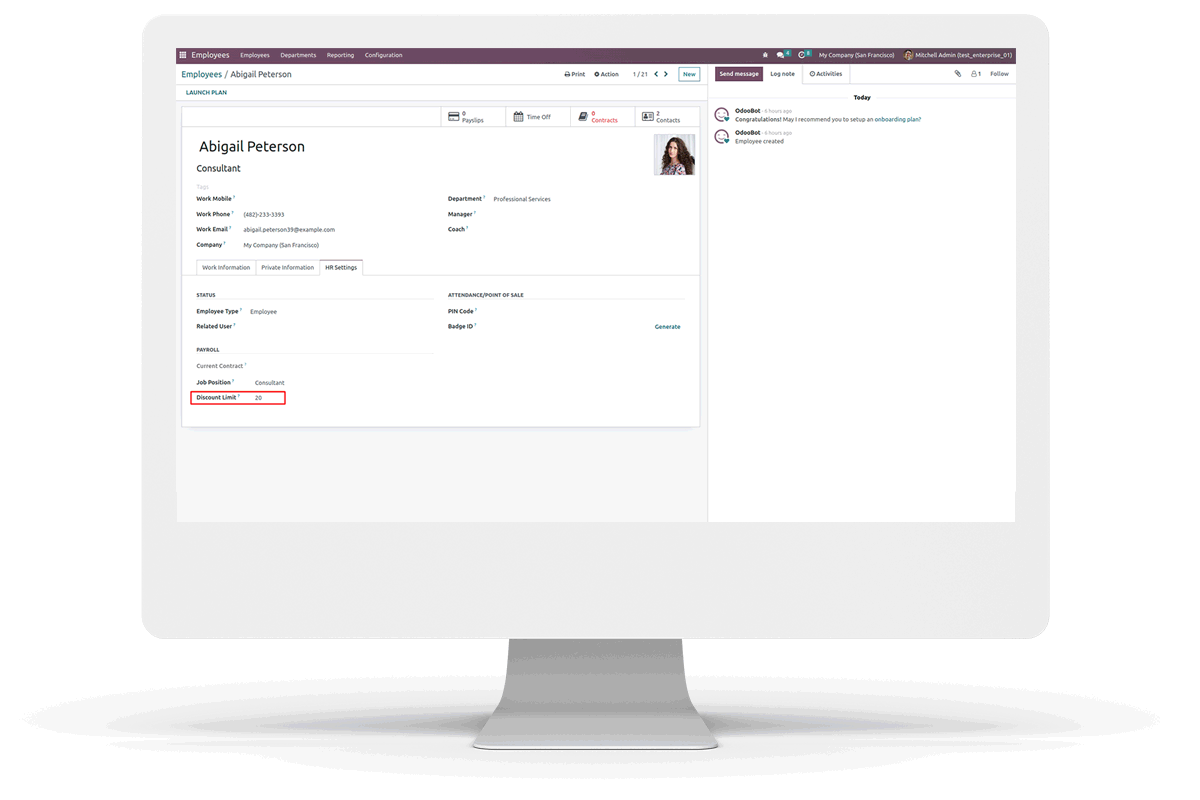 Sets discount limit for each employee.