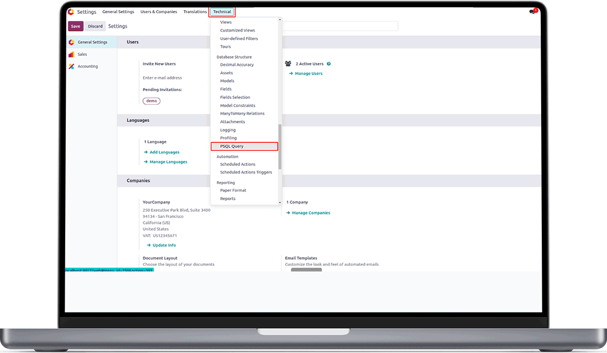 This module helps you execute a query directly in the Odoo interface and could view the result there itself.