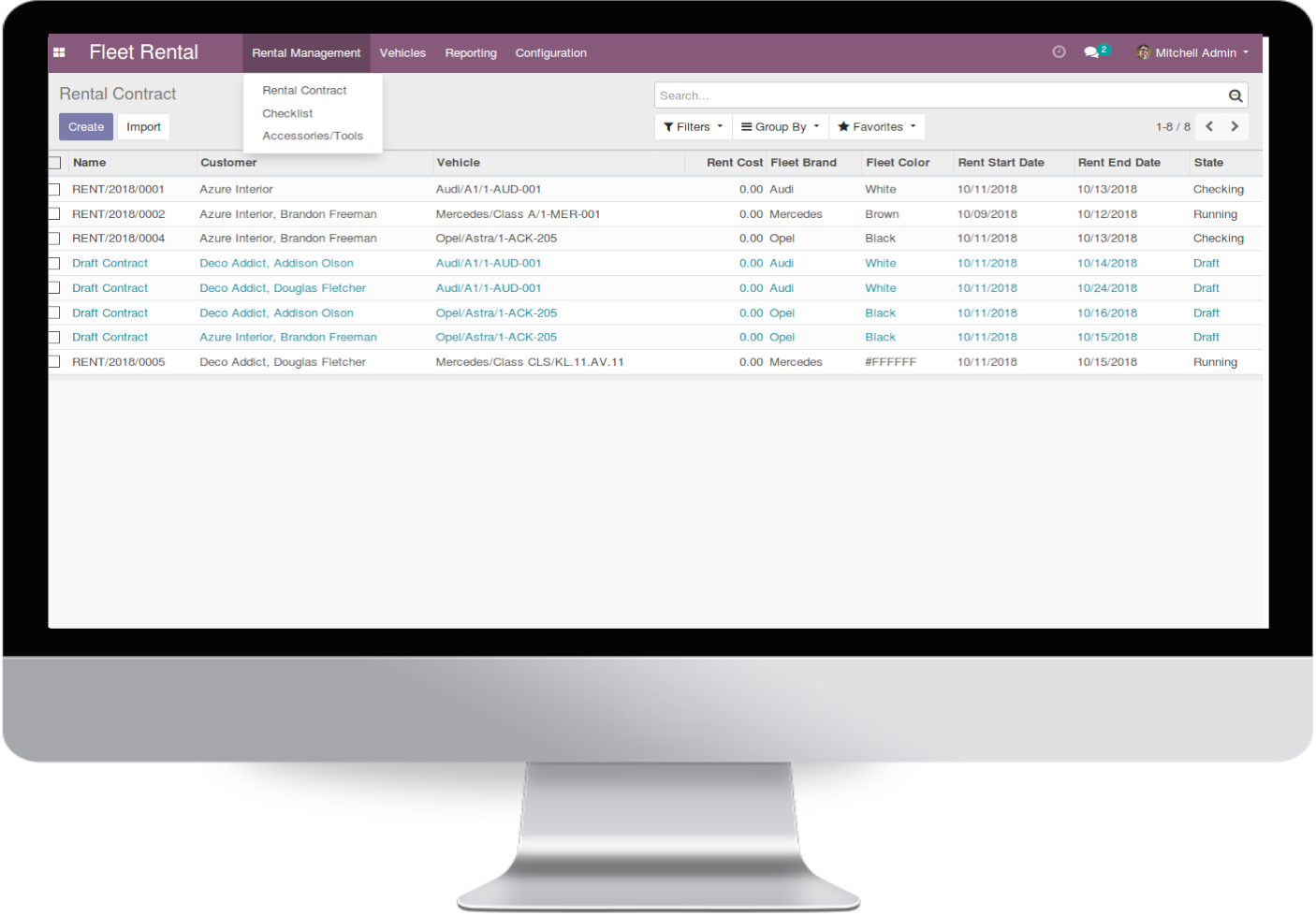 under the Fleet Menu. Also "Fleet" menu is replaced as "Fleet Rental". Here you can see different color