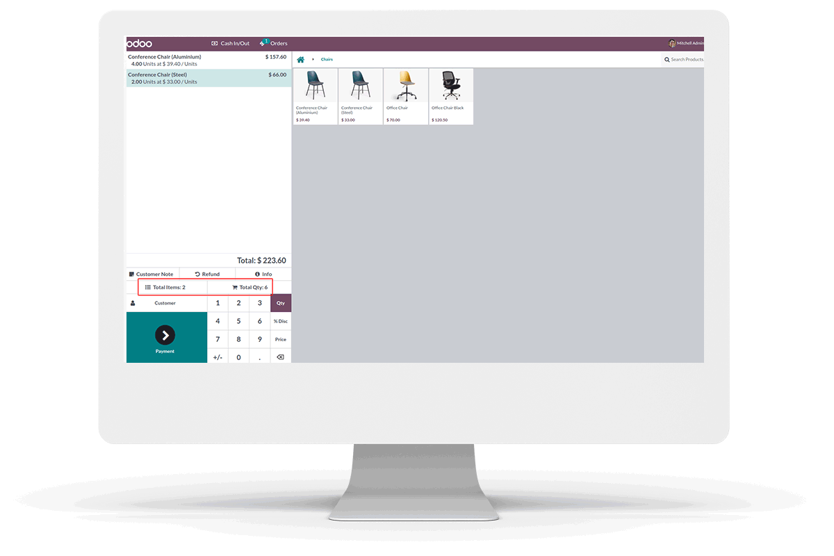 According to the order lines the count of items and its quantity will show in the numpad of pos screen