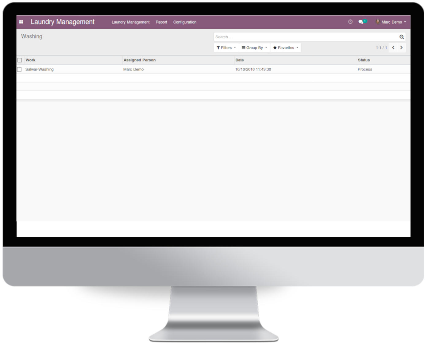 can create Laundry Order via clicking the 'Create' button. There you can specify the customer, laundry person,